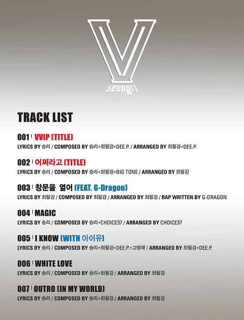 Baru-baru ini diungkapkan oleh perwakilan YG bahwa lagu-lagu Seungri benar-benar dibuatnya sendiri. Sekarang tracklist untuk mini album Seungri telah dirilis, menampilkan banyak lagu yg dia tulis atau diproduksinya.